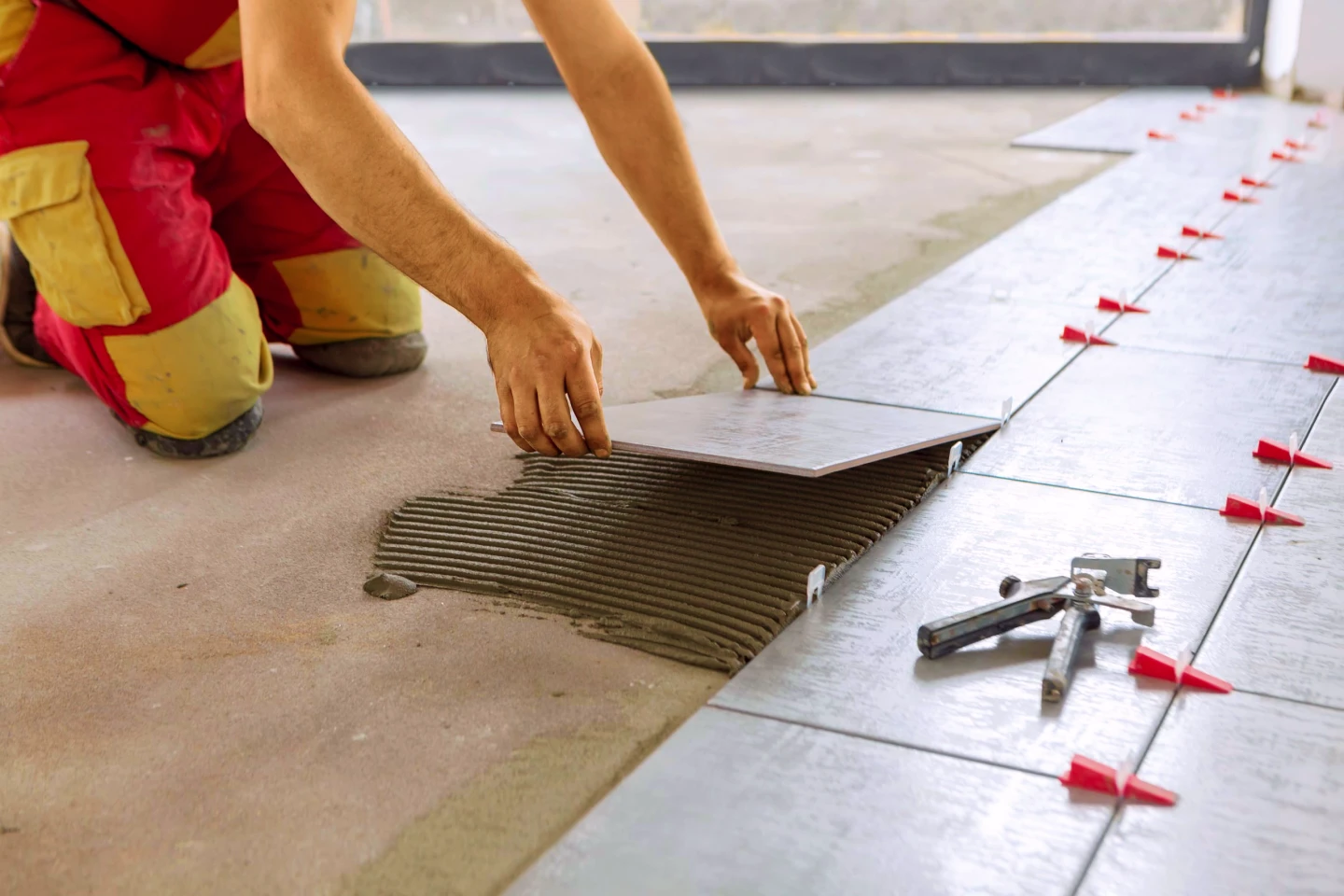 Laying of tiled floors with high precision and durable finishing.